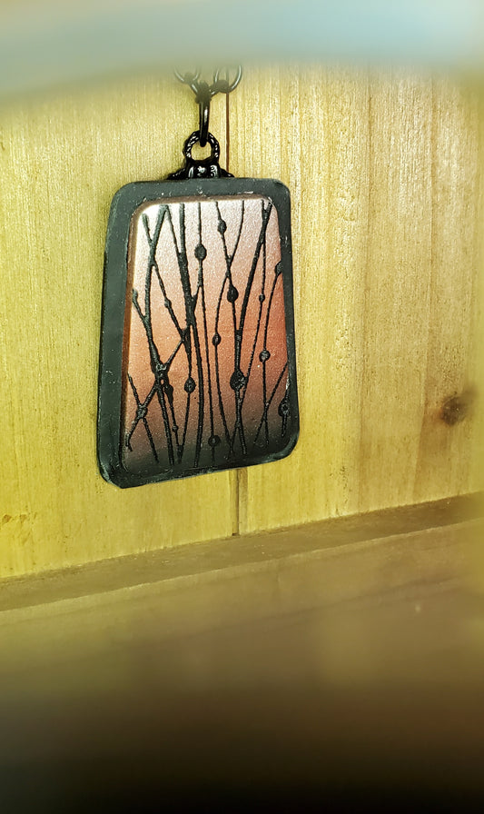 Black and Copper Fluid Art and Skeleton Leaf Necklace