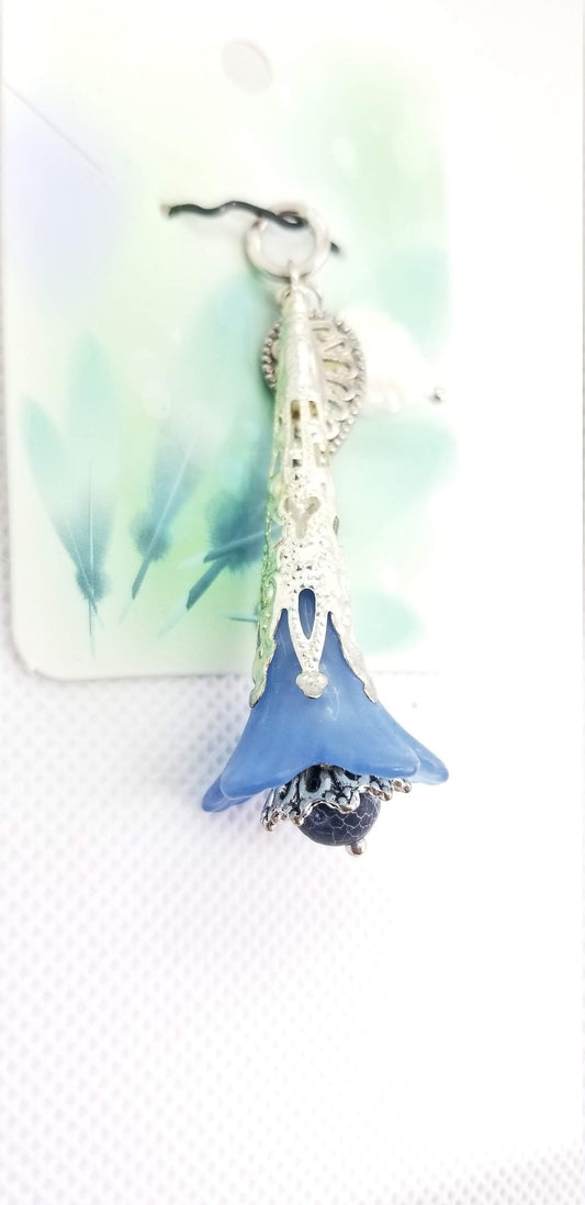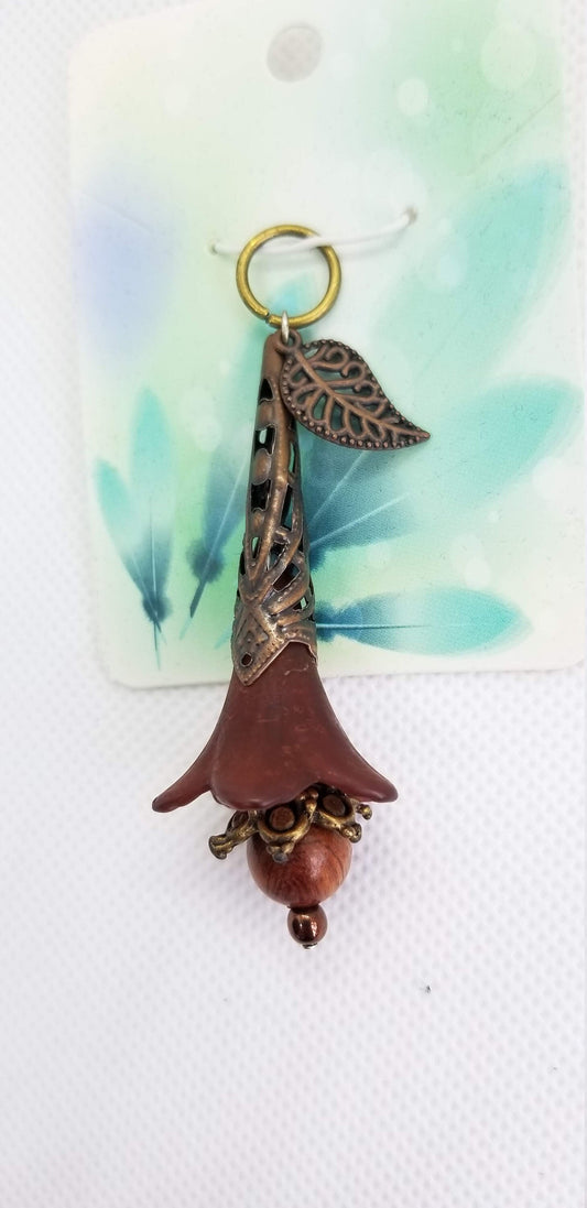 Art Deco Brown Flower Pendant with Wood Bead and leaf