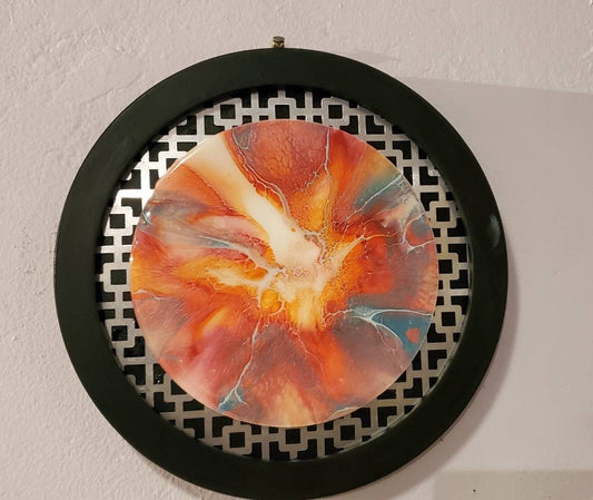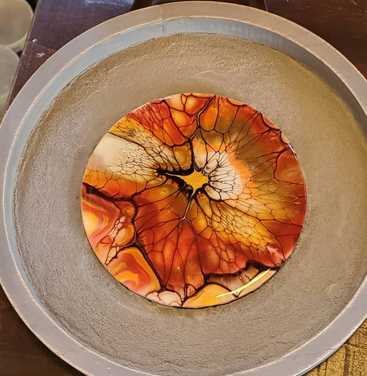 Abstract Autumn Leaf Acrylic Pour Painting Hanging Wall Art with Cement Background 12"