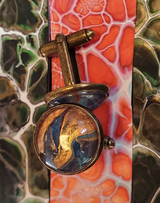 Blue and Copper Unique Acrylic Pour Painting Cufflinks