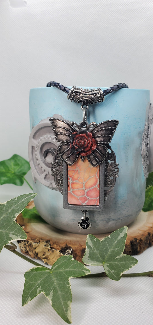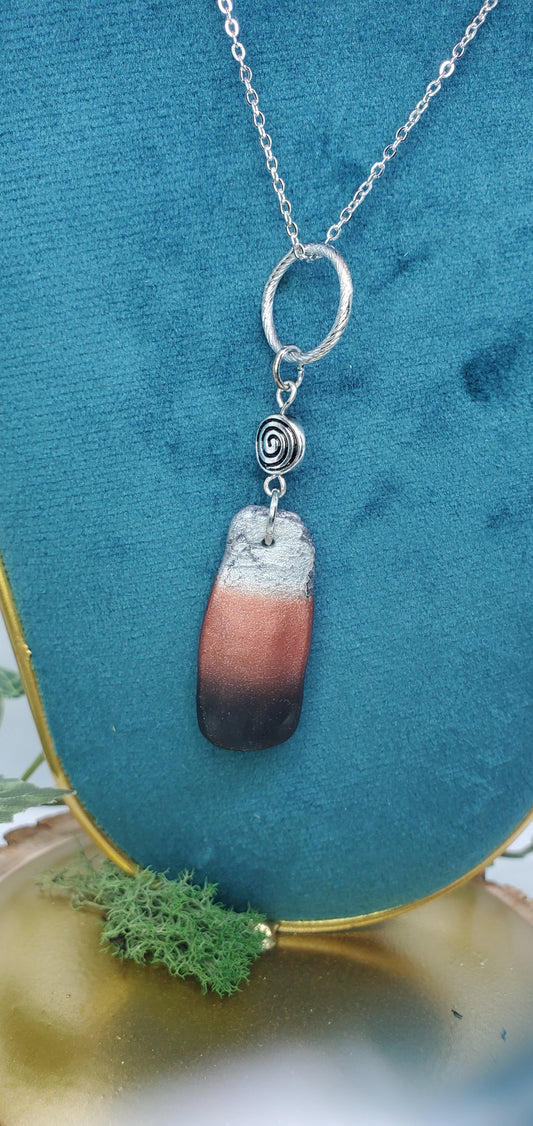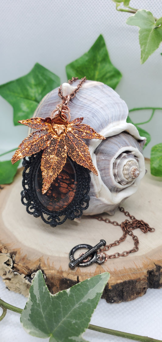 Copper and Black Leaf Skeleton and Fluid Art Necklace