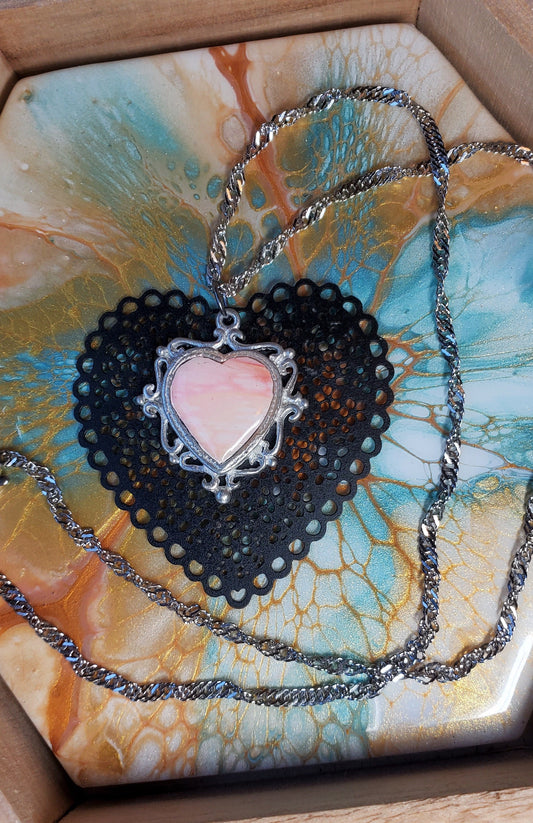 Fluid Art Sunset Heart Pendant with Stainless Steel Chain