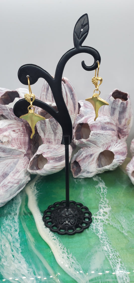 Manta Ray Earrings in 14K Matte Gold Plated Sterling Silver
