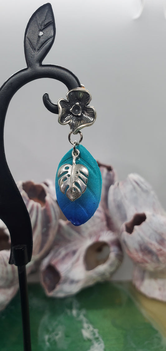 Monstera Dangle Earrings with Blue and Green Ombre Leaf in Sterling Silver