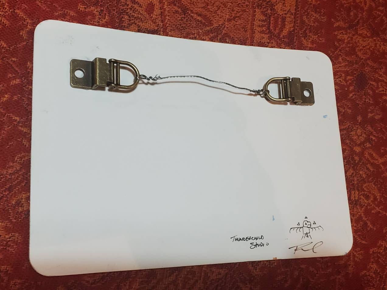 Channel your inner Jules Verne with this 3D painting of a rigid airship. Painted with oils on canvas board with real strings. Prop up on a mini easel or use the wire attached on the back. The frame opening measures 5" x 7"